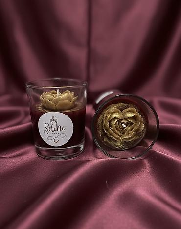 Məhsul: Gül formalı dekorativ şam (qablı) Təsvir: - Dərin bordo rəngli, dişli kənarlı dekorativ qabın içində gül ləçəklərini xatırladan fiqurlu şam. - Şamın rəngi bordo-bənövşəyi və ağ çalarların ...