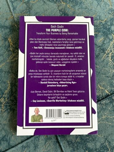 Seth Godin tərəfindən yazılmış, biznesə yaradıcı yanaşma təklif edən “Bənövşəyi İnək: Öz biznesini bənzərsiz və faydalı et” kitabı. Bu nəşr oxuculara biznesdə fərqlənməyin və uğur qazanmağın yollarını öyrədir.
