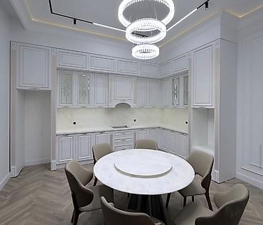 Zərif detal işləmələri, geniş saxlama həlli və funksional planlama sayəsində həm estetik, həm də rahat mətbəx mühiti yaradır.