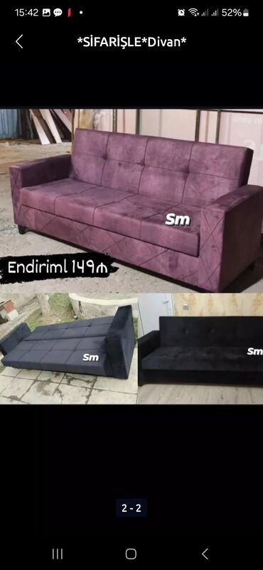 *SİFARİŞLE*Divan* *Qiymet 145man ✨Rəng seçimi var ✨Ölçü uzunluq 2metir ✨ Açılan, Bazali ✨Keyfiyyətli parça ile ve 22"lik Qupka sıxlığı ilə hazırlanır* ✨Yastıq cütü 10