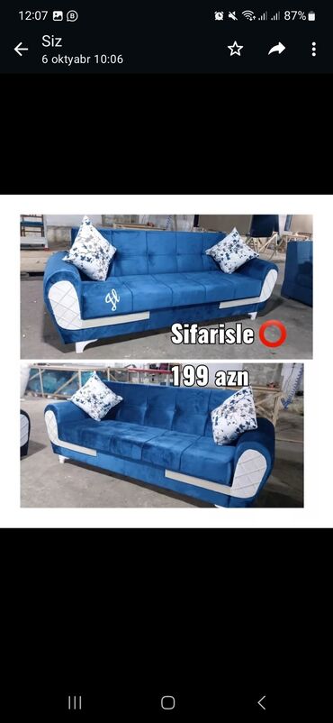 Sifarişle divanlar Rəng seçimi var Acilan bazali 2yastiq 10m