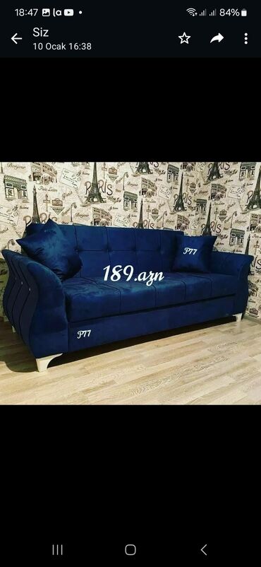 *SİFARİŞLE*Divan* *Qiymet 189 man ✨Rəng seçimi var ✨Ölçü uzunluq 2m10sm ✨ Açılan, Bazali ✨Keyfiyyətli parça ile ve 22"lik Qupka sıxlığı ilə hazırlanır* ✨Yastıq cütü 15 manat ✨