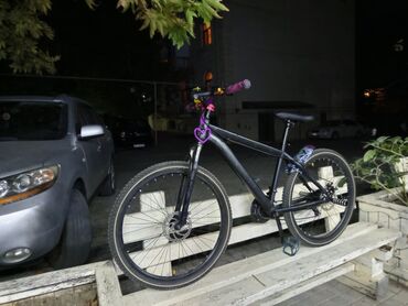 Velosiped 26, lıq təcili satılır Xüsusiyyətlər: - Göz oxşayan dizayn: qara gövdə üzərində mavi-qırmızı-ağ detal və “adidas” yazıları - 26 düym alüminium təkər halqaları; ön halqada dekorativ qırm...