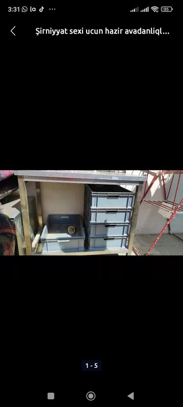 Şirniyyat sexi ucun hazir avadanliqlar satilir. Avadaliqlar hamisi yenidir. 0 faza Pec, mayalanma, xəmir qabları, sirniyyat tavalari, nerj masa, tərəzi, mikser, Şirniyyat vitrini. Bu vitrin keyfiyyetli vitrindir- hamisi komplekt satilir. Qiymət 2800 azn.Real alana endirim olacaq. Unvan Razin. Seva Xirdalan.