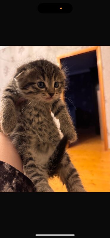 Şotland qatı qulaqlı pişik balası Ciddi alıcıya endirim olacaq 3 aylıqdı - Cins: Scottish Fold (qatlanan qulaqlar) - Rəng: qızılı/kremsi tabby naxışlı, yüngül tünd zolaqlar - Gözlər: iri, yaşıl-...
