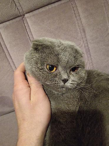 Cins: Şotland qıvrımqulaq (Scottish Fold, uzun tüklü) Rəng: tünd-qəhvəyi tabby (zolaqlı), qızılı gözlər Xüsusiyyətlər: - Yarıtüklü/uzun tüklü, yumşaq və həcmli kürk - Qıvrılmış kiçik qulaqlar - Güc...