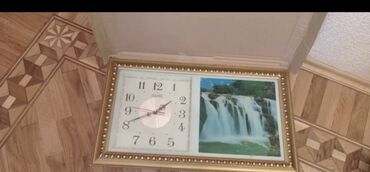 Divar üçün dekorativ saat-çərçivə - Şüşə önlü, qızılı rəngli ornamentli çərçivə - İç hissədə qara fon üzərində 3D çiçək kompozisiyası - Sağ yuxarıda dairəvi analoq saat: rəqəmlər aydın, qara göstə...