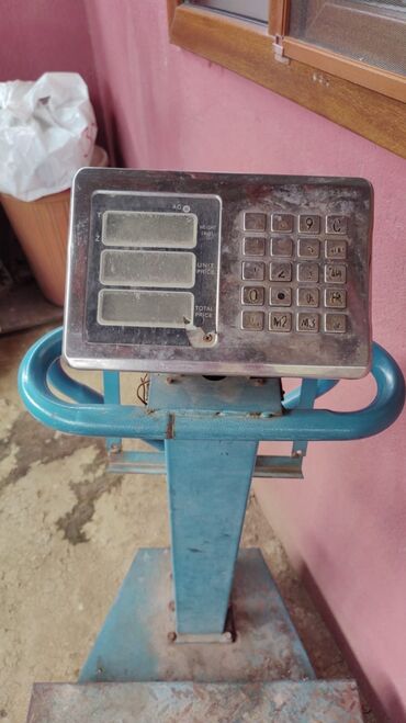 - Rəqəmsal idarəetmə paneli: çəki (kg), vahid qiymət və ümumi məbləği göstərən displeylər, ədədi klaviatura və funksional düymələr (TARE, M1–M3 və s.).