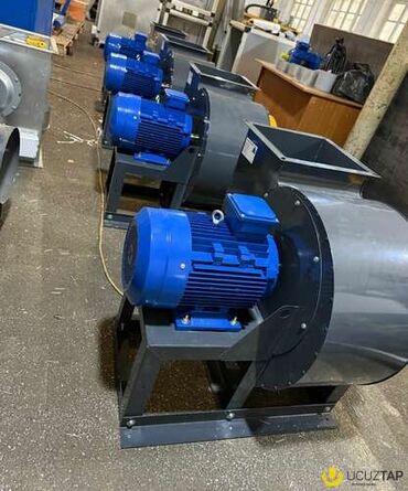 - Mərkəzdənqaçma (sentrifuqa) tipli güclü ventilyatorlar – metal korpus, yüksək fırlanma momentli elektrik mühərriki, möhkəm şassi üzərində. Toz, tüstü, isti hava və proses qazlarının daşınması, emalatxana, anbar, boya-kamera və istehsal sahələrinin havalandırılması üçün.