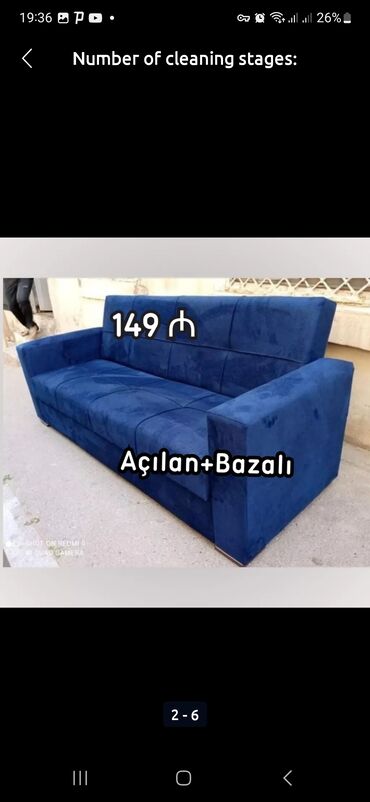 Si̇fari̇şle hazirlanir divan 199❌189 manat rəng seçimi var ölçü uzunluq 2m10sm açılan, bazali keyfiyyətli türkiye nabuk parçalari və 22"lik qupka sıxlığı ilə hazırlanır yastıq cütü 15 azn şeh...