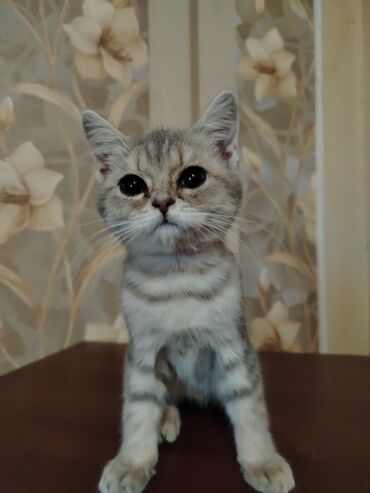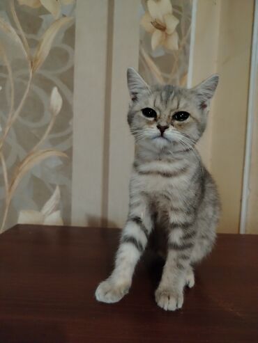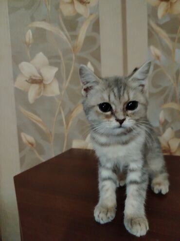 3 dənə erkey balalar idi. İkisi satıldı. Bir bu şirin qalıb. Rəngli gözdü. Öz pişiyimin balasıdır. 25 sentyabr doğulub. Tam sağlam oynayan pişikdir. Ata silver şınşıla ana skotiş foldur. Təmiz ci...