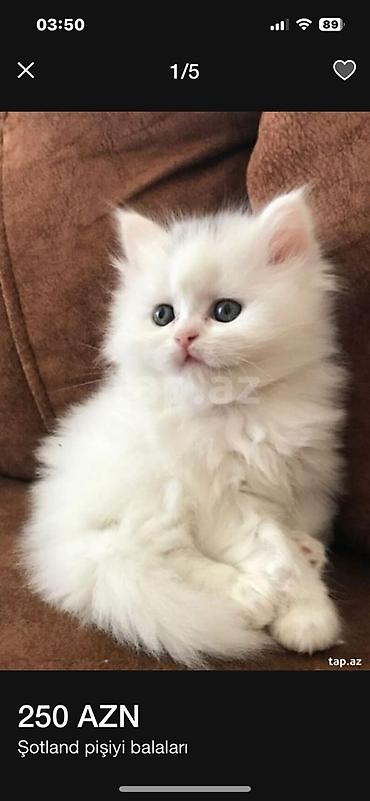 Qiymətlər 100 manatdan başlayır .hər qiymətə var Skottish Fold balaları – qısa tüklü, qulaqları yığılmış, iri dairəvi gözlü, yumuşaq plyuş kürklü. Rənglər: mavi (boz), ağ və gümüş-şaded (silver sha...