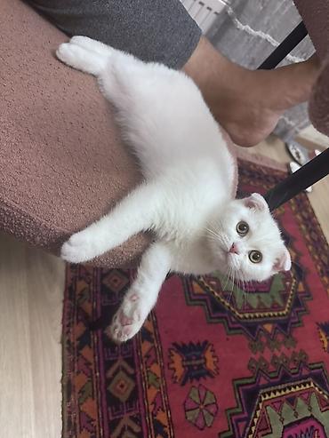 Məhsul: Ağ rəngli Scottish Fold balası Təsvir: - Cins: Scottish Fold (qatlanmış qulaqlar) - Rəng: Tam ağ, yumşaq tüklü - Gözlər: Tünd, iri və parlaq - Xüsusiyyətlər: Sakit mizaclı, mehriban, insan...