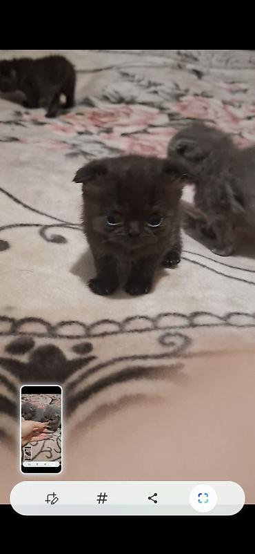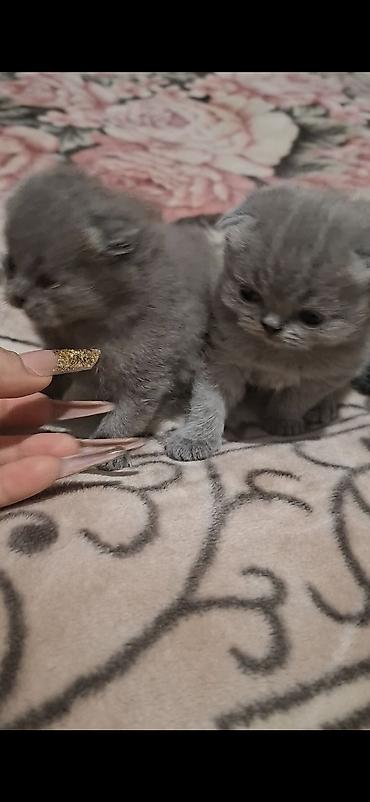 Şotland qatlanaqlı (Scottish Fold) balaca pişik balaları – mavi (blue) rəng Xüsusiyyətlər: - Cins: Scottish Fold (qatlanaqlı qulaqlar) - Rəng: Solid blue (təkrəng boz) - Gözlər: Böyük, yuvarlaq; i...