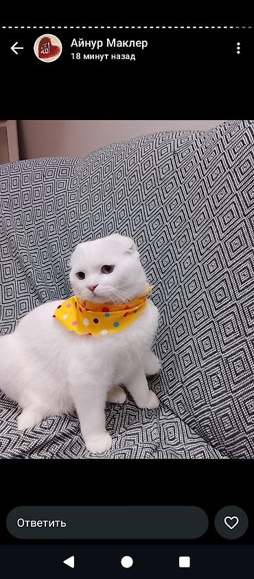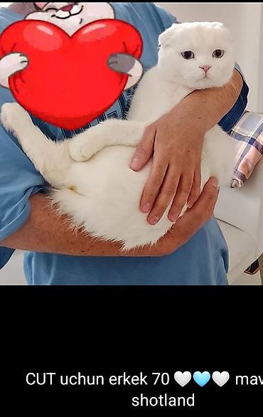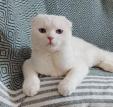 Ağ rəngli Scottish Fold bala pişik - Cins: Scottish Fold (yumulmuş/qulaqları qatlanmış) - Rəng: tam ağ, yumşaq və sıx yun - Gözlər: mavi-boz tonlarda böyük və ifadəli - Yaş qrupu: körpə - Xasiyyət...