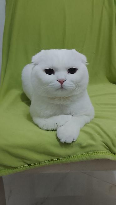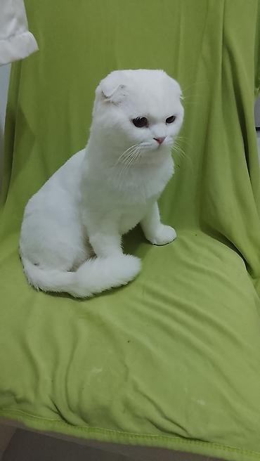 Şotland qıvrımqulaq (Scottish Fold) pişiyi dişi.qisir deyil. - Rəng: tam ağ, parlaq və sıx yun - Qulaqlar: tipik qıvrılmış, başa yatmış forma - Gözlər: iri, ifadəli, qızılı ton - Xəz: qısa, yumşaq...