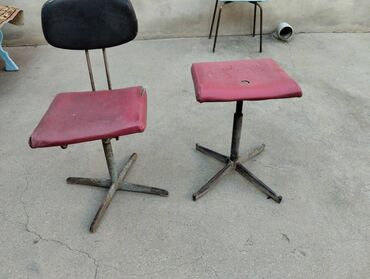 İşlənmişSovet dövründən qalma stullar. Cüzi restavrasiya tələb olunur. İnteryerdə dekor kimi də istifadə oluna bilər. Söykənəcəyi olan stul yerində fırlanır və hündürlüyünü tənzimləmək olur. Digəri isə fırlanaraq qalxır və enir.