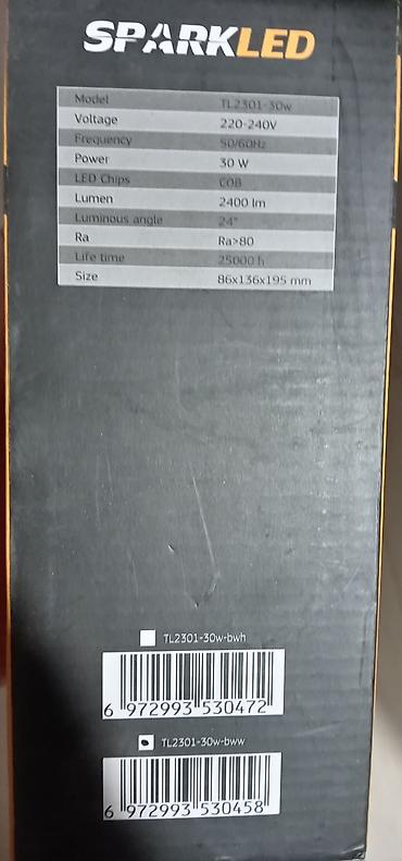 - Model variantları: TL2301-30W-BWH və TL2301-30W-BWW (qutudakı barkodlarla göstərilib)