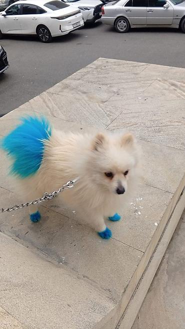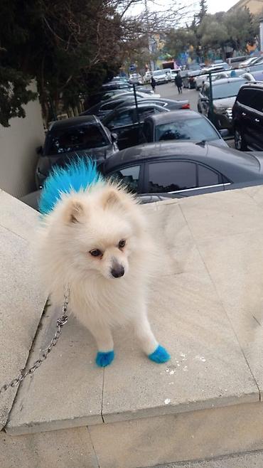 Pomeranian (Spitz) balaları – ağ tüklü, mini tip. - Xarakter: mehriban, oyunbaz, insanlara tez alışan, ev şəraitinə uyğun. - Görünüş: sıx və yumuşaq ikiqat ağ yun örtüyü, qısa burun, kiçik qulaql...