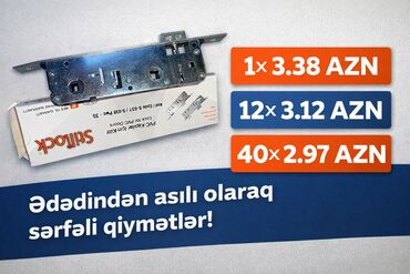 Məhsul: Daxili qapı kilidləri – Safelock/SKY və Akdeniz Safelock/SKY seriyası - Model: Adi (düz dil) - Qutuda 40 ədəd: 92,40 AZN (2,31 AZN/ədəd) - 20 ədəd: 48,60 AZN (2,43 AZN/ədəd) - Tək əd...