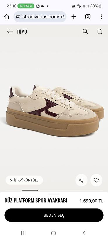 Stradivarius idman ayaqqabısı - Rəng: açıq bej və yaşıl tonların kombinasiyası, xırda neon-yaşıl detal - Üst material: qarışıq tekstur – hamar sintetik dəri və parça panellər - Bağlama: klassik ba...