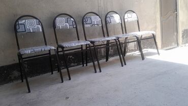 Çatdırılma yoxdurDəstə daxil olan beş ədəd qara metal çərçivəli stul. Stulların oturacaqları və arxalıqları ağ, boz və qara rənglərdə həndəsi naxışlı parçadan hazırlanmışdır. Bu stullar evdə, ofisdə və ya kiçik tədbirlər üçün istifadə oluna bilər.
