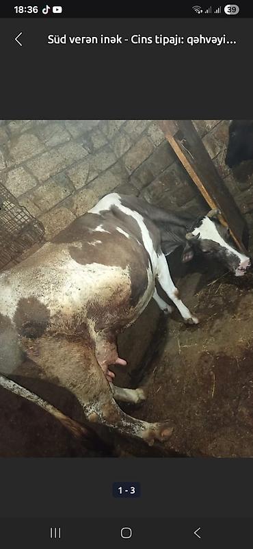 Simental tipli inək - Rəng: qəhvəyi-ağ ləkəli - Qulaqlıq birləşdirici nömrə etiketi mövcuddur - Südçülük üçün saxlanılan fermadadir, sağım aparatına uyğun - Gövdə quruluşu iri, döş və bud nahiyələ...