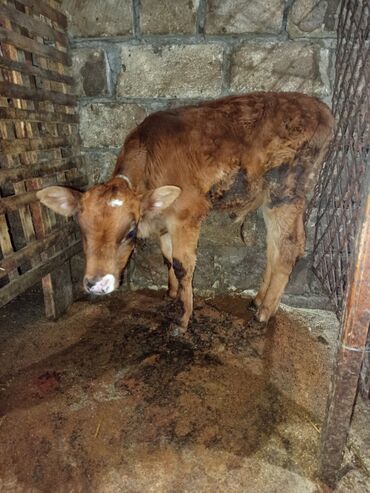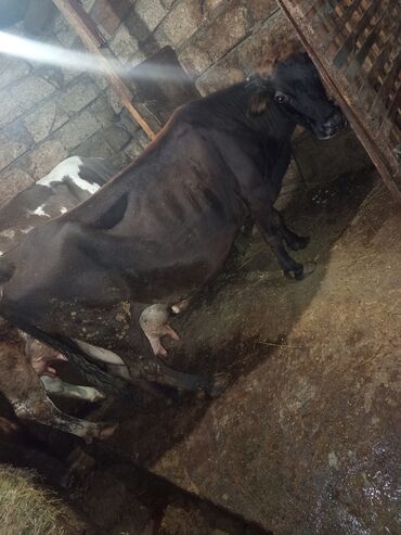 Süd verən inək - Cins tipajı: qəhvəyi-ağ ləkəli, buynuzlu - Süd istiqamətli saxlanılıb, iri və dolğun süd vəzisi görünür, sağım üçün əlverişlidır - Bədən quruluşu sağlam və iri, qidalanma üçün uyğ...