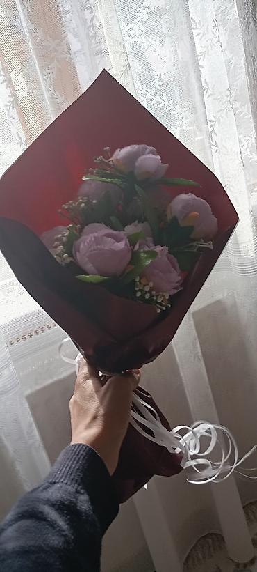 Lavanda rəngində süni güllərdən hazırlanmış buket. - Tərkib: 7 ədəd