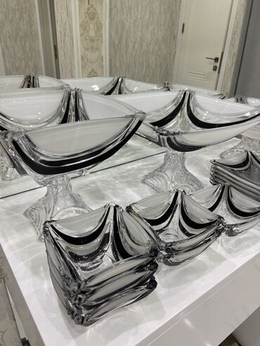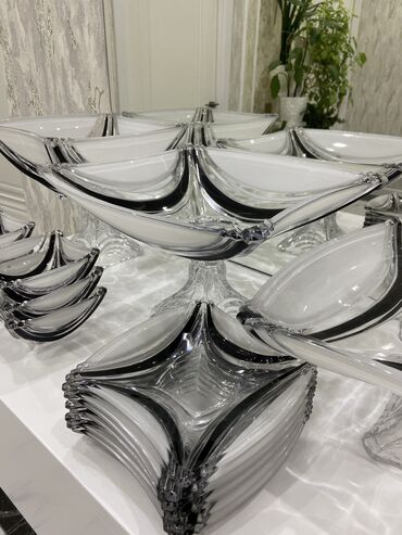 Ünvandan götürməŞüşə ağır qablardır.2 ədəd meyvə qabı 1 ədəd şirniyyat qabı,6 kiçik tort qabı,6 ləpə qabı