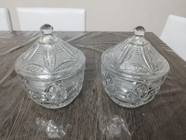 Şüşə qapaqlı qablar dəsti - Material: qalın, şəffaf şüşə - Dəst: 2