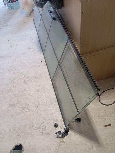 Şüşə sürgülü qapı dəsti - Material: temperli/bağlantı fitilli şəffaf şüşə panellər - Tip: üst relsli sürgülü sistem - Komplektasiya: bir neçə şüşə panel, yuxarı və aşağı bələdçi/relssiz aparat, şü...