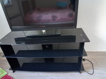 TV stendinin üzərində düzaltı dayaqla TV yerləşdirilə bilər, alt rəflər isə əlavə avadanlıqlar üçün nəzərdə tutulub.
