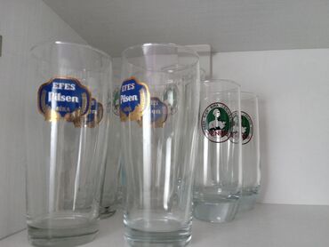 Pivə stəkanları dəsti - Brend loqolu şüşə stəkanlar: “Efes Pilsen” (mavi-qızılı etiket) və “Venus”/pivə loqosu (yaşıl-qırmızı dairəvi nişan). - Uzun formalı, qalın dibli pint tipli stəkanlar – lag...Giriş•Qeydiyyat