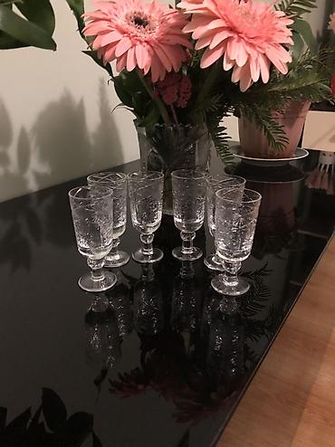 - 6 ədəd ayaqlı kiçik bokal – şəffaf, dərin oyma dekorlu, nazik ayaqlı dizayn. Likör, şirə və ya dequstasiya porsiyaları üçün ideal.