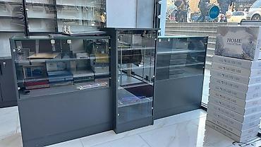 - Ön kassaya/ekspozisiyaya uyğun 3 ədəd aşağı hündürlüklü şüşə vitrin modul (üstü şüşə, içi 2–3 mərtəbəli rəf, kilidlənən qapılar)