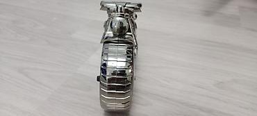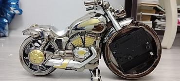 - Dizayn: Xrom rəngli, detallı motosiklet korpusu; ön təkər hissəsində analoq saat.
