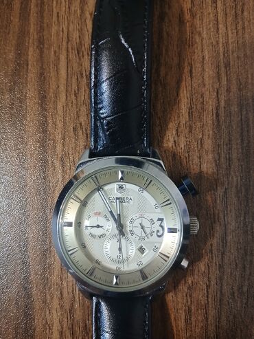 TAG Heuer Carrera avtomatik qol saatı. 2017 cı ilde alımışam uzun müddəti istifadə etmirəm. Bütün hər şeyi avtomatikdi. 24 saatlıq saat dilimi işləyir. Günü və həftənin günü avtomatik dəyişir sadəcə ayı dəyişmir. Uzun müddəti taxmıram deyə dayanıb içinə toz yığılıb ustaya aparılmalıdır.