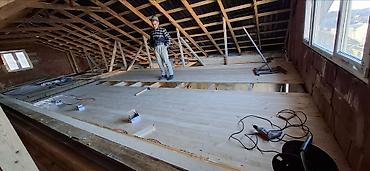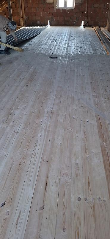 - Evin, mansardın və koridorların taxta döşəmələrinin yığılması