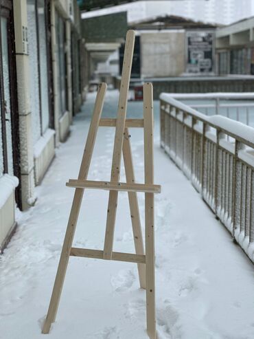 Taxta rəsm molberti - Material: təbii ağac, cilalanmış səth - Tip: üçayaqlı, klassik studiya/pleyn‑er molberti - Hündürlüyü tənzimlənən orta və üst sıxaclı sistem – müxtəlif ölçülü kətan və lövhəl...