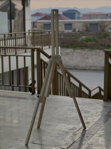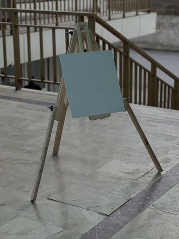 Taxta molbertlər – studiya, kurs, sərgi və tədbirlər üçün - Material: təbii ağac (şam). Zımparalanmış səth, səliqəli birləşmələr, metal bərkidicilər. - Quruluş: üçayaqlı A-forma. Ön şin kətan/tabl...