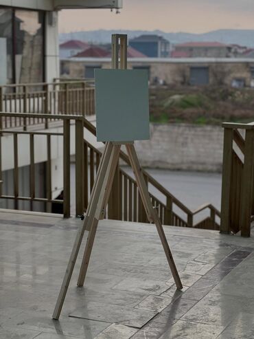 Taxta molbertlər – studiya, kurs, sərgi və tədbirlər üçün - Material: təbii ağac (şam). Zımparalanmış səth, səliqəli birləşmələr, metal bərkidicilər. - Quruluş: üçayaqlı A-forma. Ön şin kətan/tabl...Giriş•Qeydiyyat