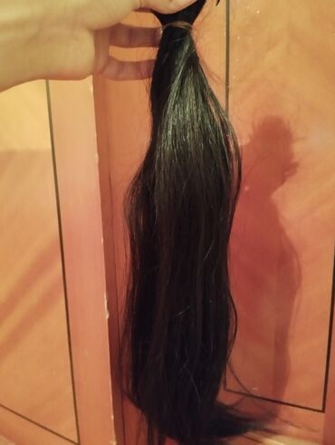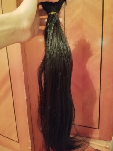 Təbii insan saçı – tünd qara, uzun, düz tip.