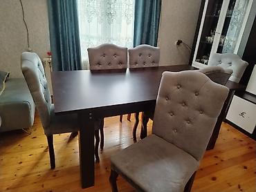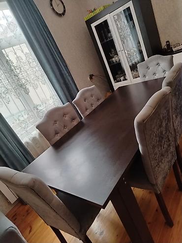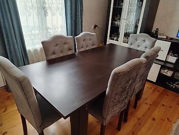 • Qonaq otağı üçün, Yeni, Açılan, Dördbucaq masa, 6 stul