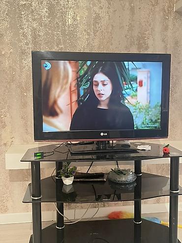 LG televizor və şüşə TV stendi dəsti - Marka/model: LG (ekran ölçüsü təxminən 32–37 düym aralığı) - Ekran tipi: LCD - Girişlər: arxa paneldə standart portlar (anten girişi və s. – modelə uyğun) - ...