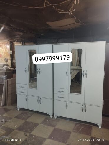 Məhsul: Güzgülü paltar dolabları Xüsusiyyətlər: - 3 qapılı və 4 qapılı modellər - Ortada tam ölçülü güzgü - Yan tərəfdə rəfli bölmə və 2 ədəd çekmece - Aşağı hissədə geniş dolab bölmələri - Möhkəm...Razılaşma yolu ilə