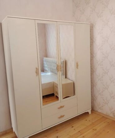 üç qapı dolablar 629 azn. Ağ rəngdə yataq otağı dəsti. Dəstə daxildir: güzgülü komod, çarpayı, çarpayı yanında tumba və güzgülü dolab. Dolabda güzgülər var. endirimli qiymətlə üç gün.