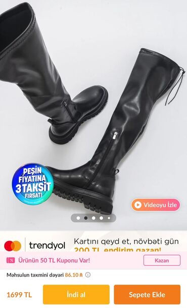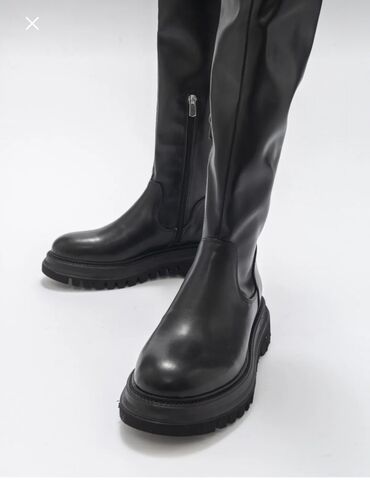 Qadın uzun temiz dəri çəkmə baha alınıb - Rəng: tünd qəhvəyi - Material: yumşaq dəridən, dekorativ iri tikişlər - Dizayn: dizə yaxın hündürlük, yan tərəfdə metal tokalı dekorativ kəmər - Daban: qa...