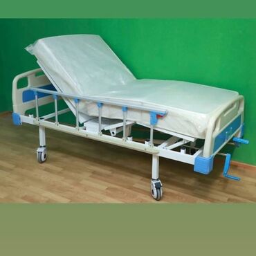 Xəstə çarpayısı – tibbi funksional model - Mexaniki idarəetmə: ayaq hissəsində qol ilə baş və diz hissəsinin bucağını qaldırıb-endirmə imkanı - Yan qoruyucular: paslanmayan metal relslər, asan yux...