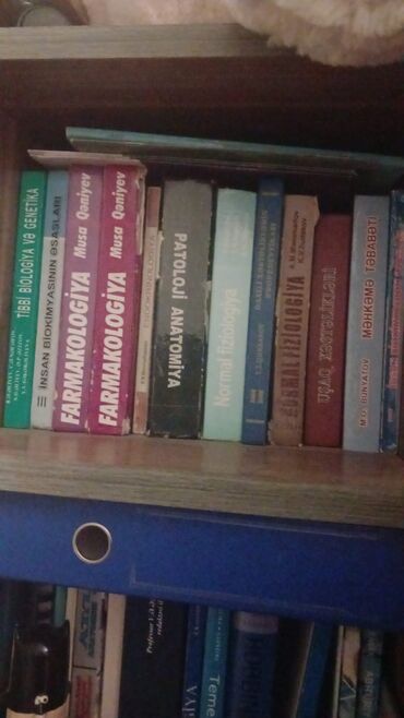 - Şkafdan əlavə tibbi kitablar görünür: Farmakologiya (Musa Qəniyev), Patoloji Anatomiya, Normal Fiziologiya, Tibbi biologiya və genetika, İnsan biokimyası və s. – əsas tibbi fənlər üzrə dərslik və arayış xarakterli nəşrlər.